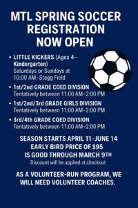 MTL Spring Soccer Registration Is Open — Early Bird Pricing Available!