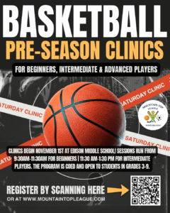 Get ready for the upcoming season with Pre-Season Basketball Clinics starting November 1st at Edison Middle School! Sessions run from 9:30–11:30 AM for beginners and 11:30 AM–1:30 PM for intermediate players. Open to coed students in grades 3–9. REGISTER HERE
